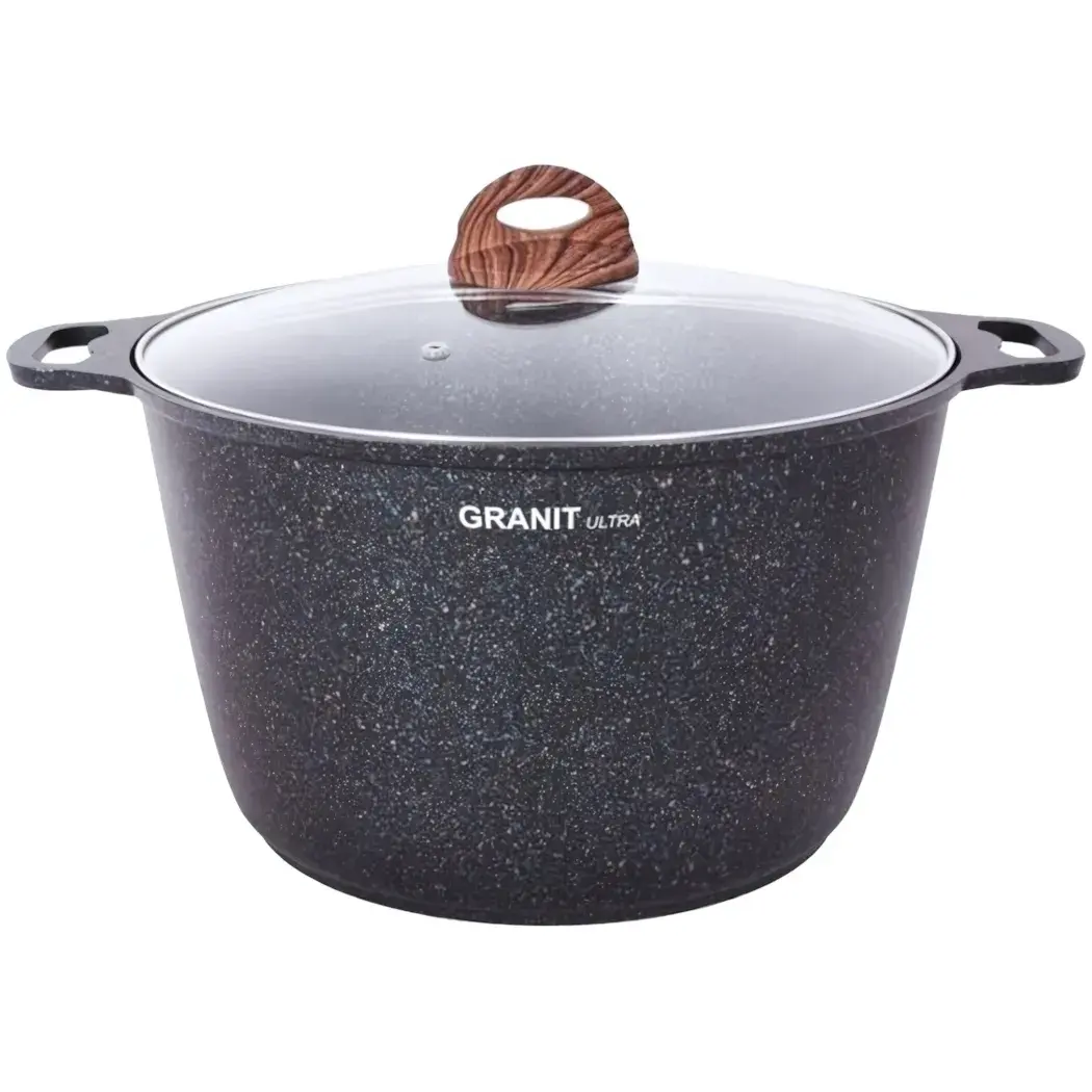 Кастрюля литая 10л 'Granit ultra', черная/синяя, алюминий, со стеклянной крышкой