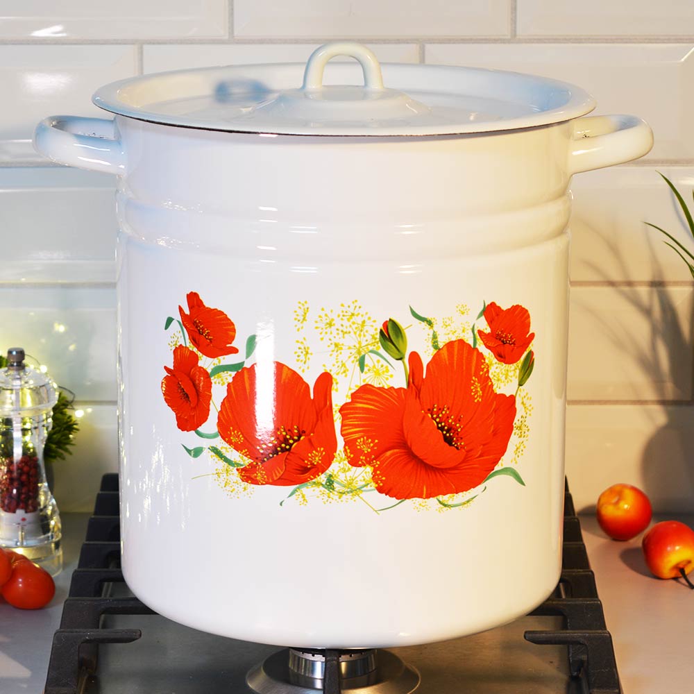 Эта вместительная эмалированная кастрюля объемом 12 литров станет надежным помощником на вашей кухне. Яркий цветочный рисунок добавит уюта и эстетики, а прочная стальная основа с эмалированным покрытием обеспечит долговечность и сохранение вкуса блюд. Подходит для приготовления супов, компотов, варенья и больших порций горячих блюд для всей семьи или компании.