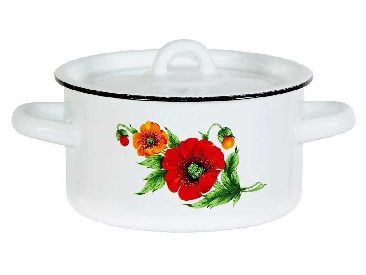Кастрюля эмалированная 1,5л с цветочным узором, сталь, металлическая крышка