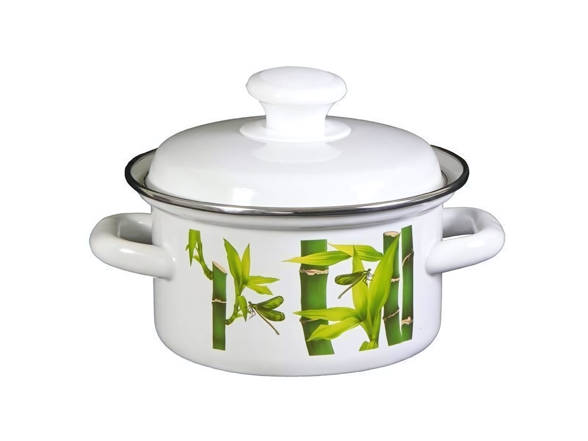 Эта кастрюля станет незаменимым помощником на вашей кухне, обеспечивая комфорт и удобство в приготовлении блюд. Яркий принт с изображением бамбуковых стеблей и зелёных листьев придаёт ей эстетичный вид, а эмалированное покрытие гарантирует долговечность и лёгкость в уходе.