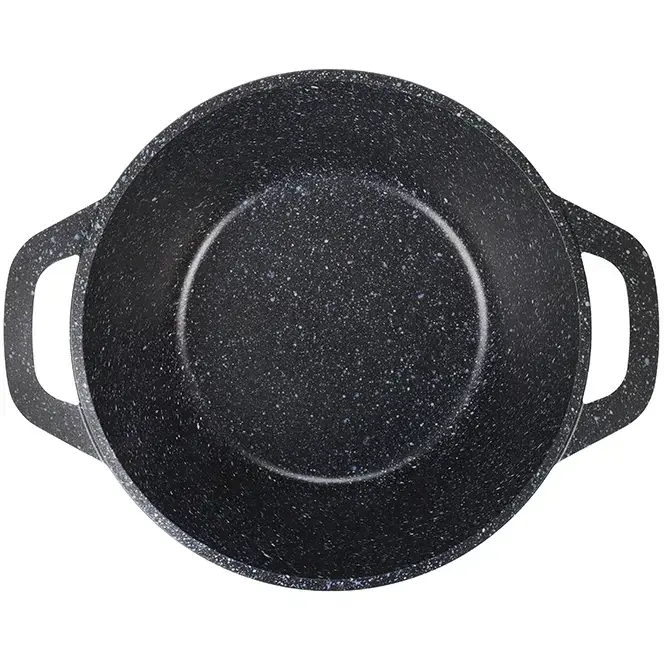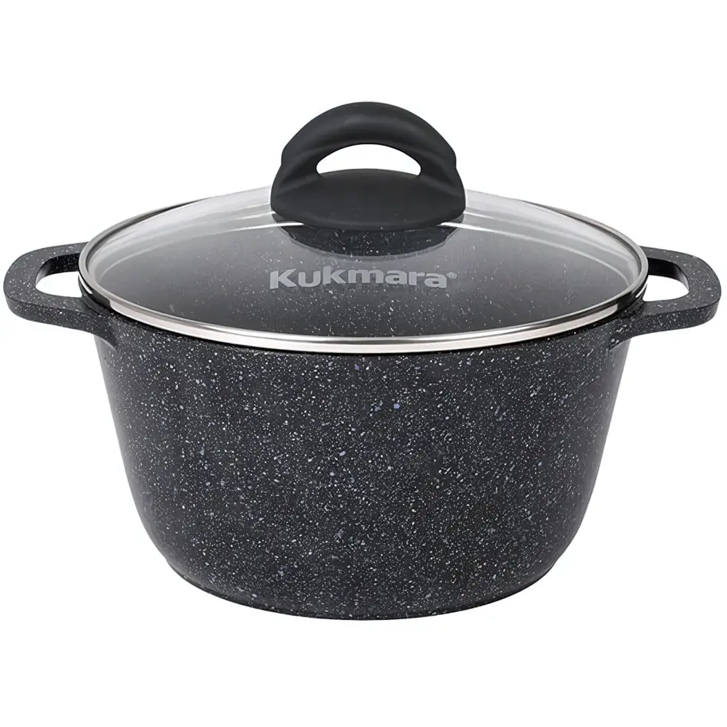 Кастрюля серии «Granit» сочетает прочность литого алюминия и инновационное антипригарное покрытие, которое сохранит ваши блюда от пригорания даже при максимальных температурах. Стеклянная крышка с пароотводом создаёт оптимальные условия для тушения, варки и томления.