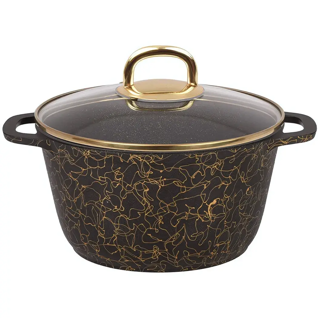 Кастрюля 2,5л «Грация» с антипригарным покрытием, литой алюминий, черный/золото, стеклянная крышка