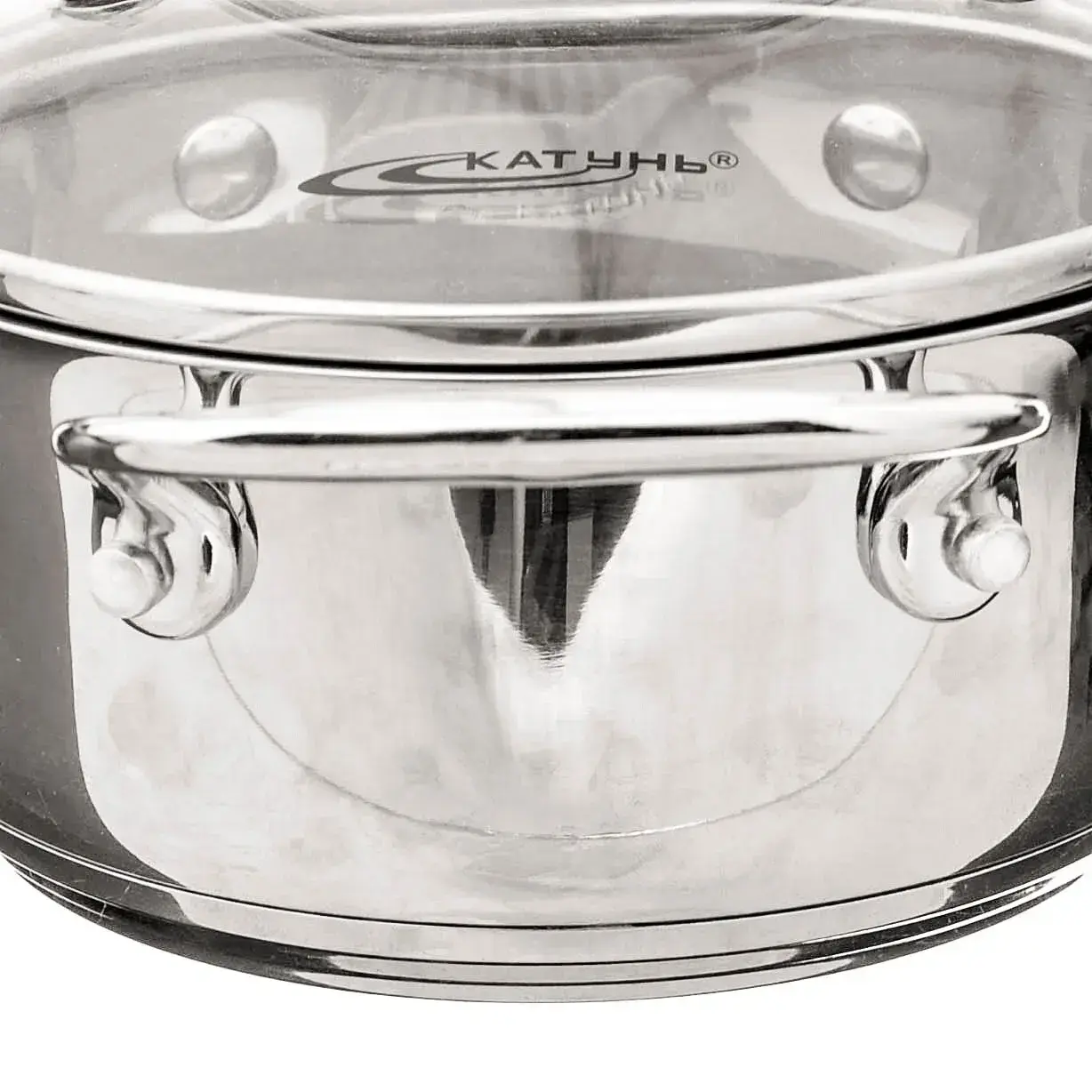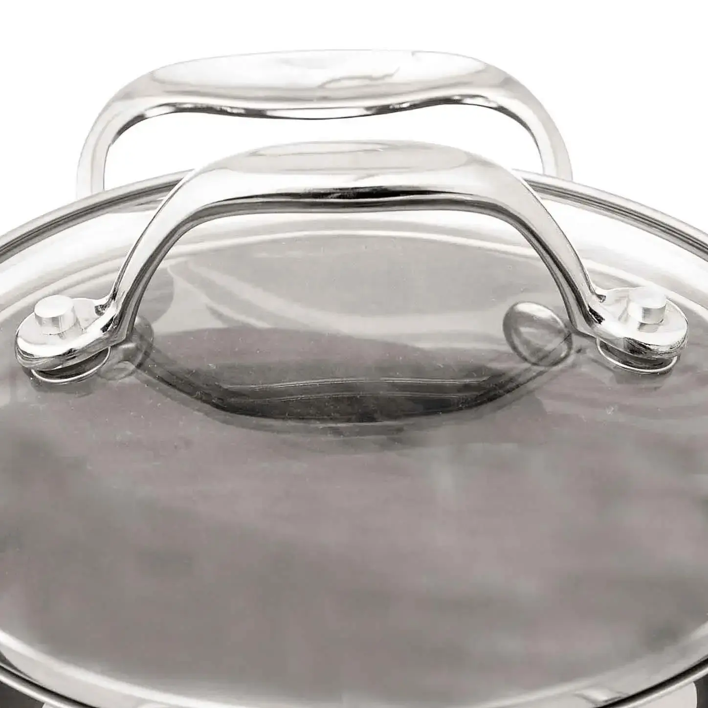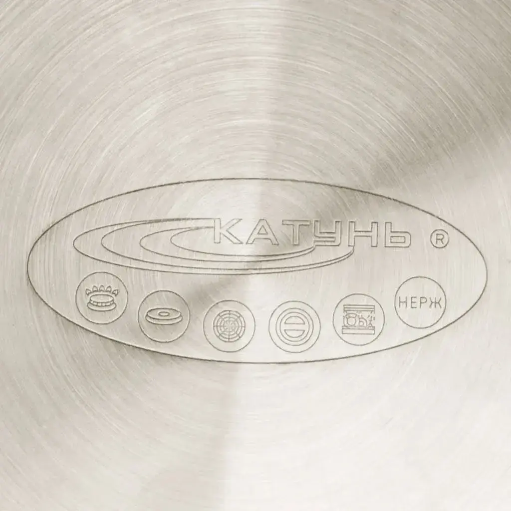 Диаметр 20 см идеально подходит для стандартных конфорок. Толщина стенок 0,8 мм обеспечивает быстрый нагрев, а зеркальная полировка облегчает уход — достаточно протереть поверхность мягкой губкой. Металлическая окантовка крышки предотвращает деформацию при нагреве.