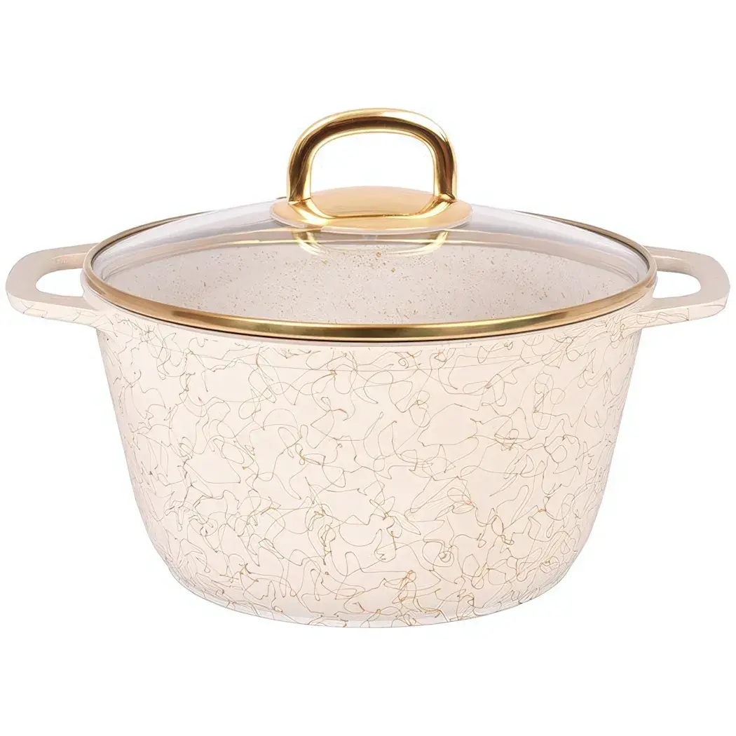 Кастрюля «Грация» 3,5л с антипригарным покрытием, литой алюминий, стеклянная крышка, белый/золото