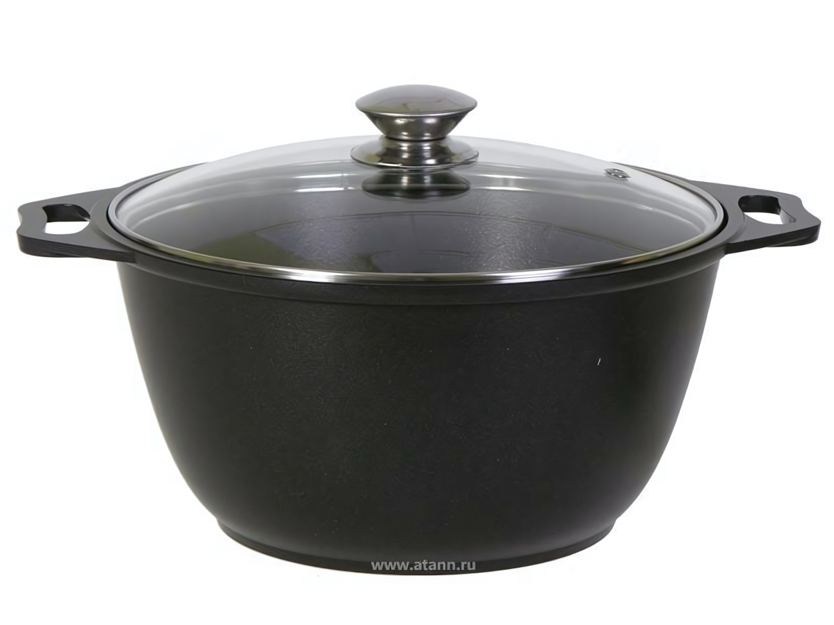 Кастрюля 3 л, чёрный, литой алюминий, антипригарное покрытие, стеклянная крышка – равномерный нагрев и экономия энергии
