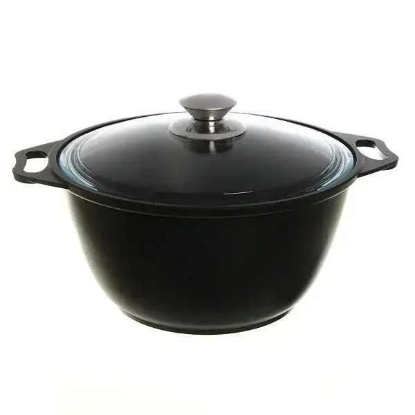 Кастрюля литая 'Kukmara' 3л, алюминий/стекло, черная с крышкой