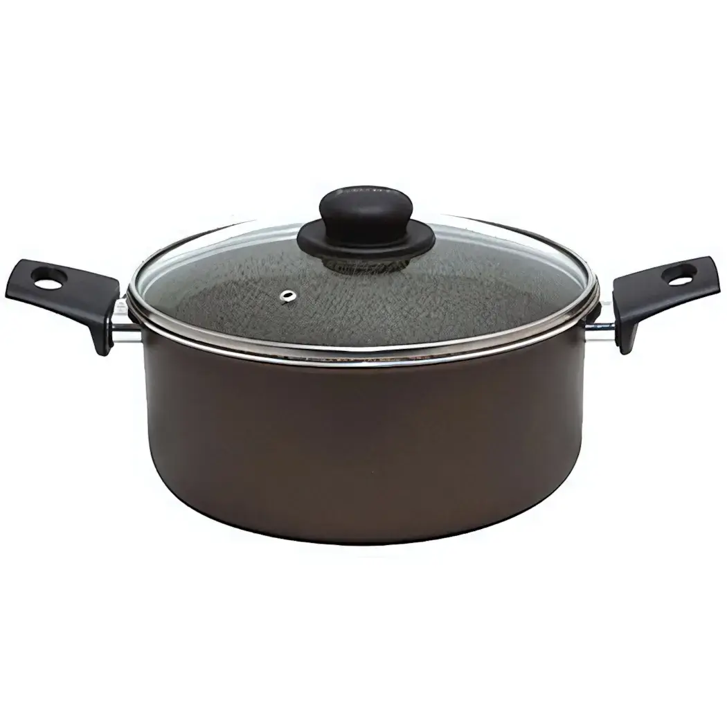 Эта кастрюля подходит для приготовления различных блюд на газовых и электрических плитах. Эргономичная бакелитовая ручка обеспечивает надежный хват, а прозрачная крышка позволяет контролировать процесс приготовления без необходимости открывать кастрюлю. Внутреннее антипригарное покрытие облегчает процесс мытья и предотвращает пригорание пищи.