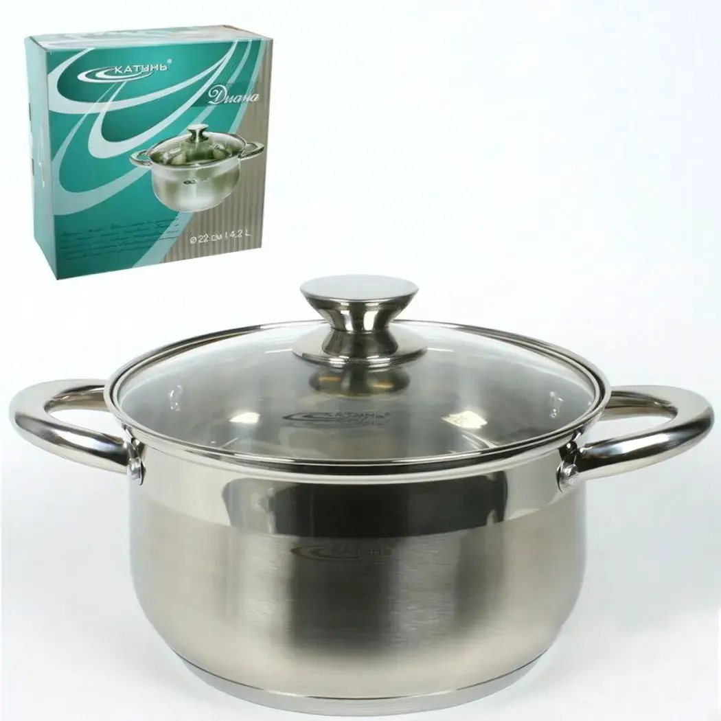 Кастрюля из нержавеющей стали «Диана» 4,2л, 22см, стеклянная крышка