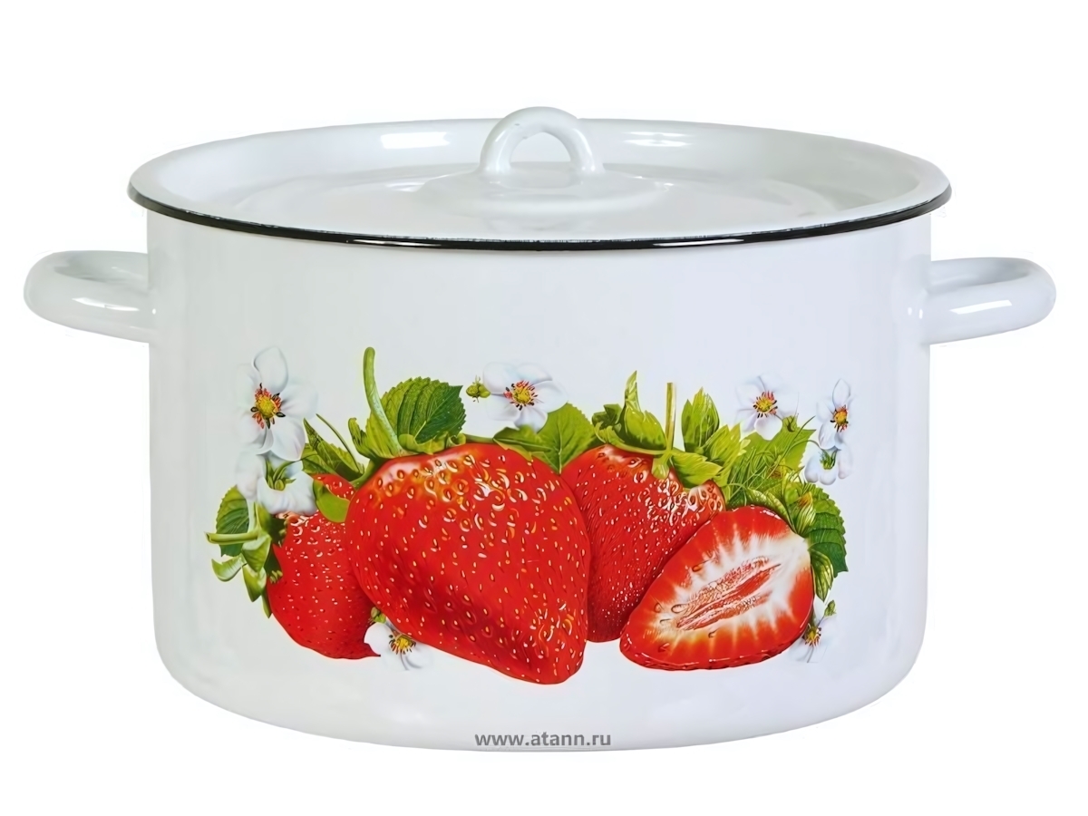 Кастрюля эмалированная 7л, с рисунком клубники, сталь, для всех плит