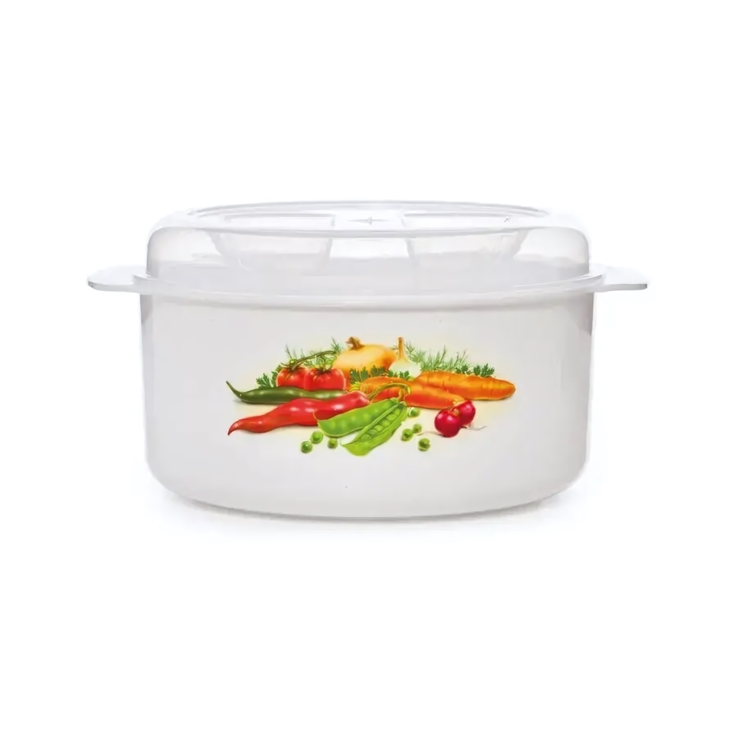 Прозрачная кастрюля с герметичной крышкой — идеальное решение для быстрого разогрева в микроволновке и компактного хранения продуктов. Изготовлена из безопасного пластика, который сохраняет свежесть ваших блюд и экономит место в холодильнике.