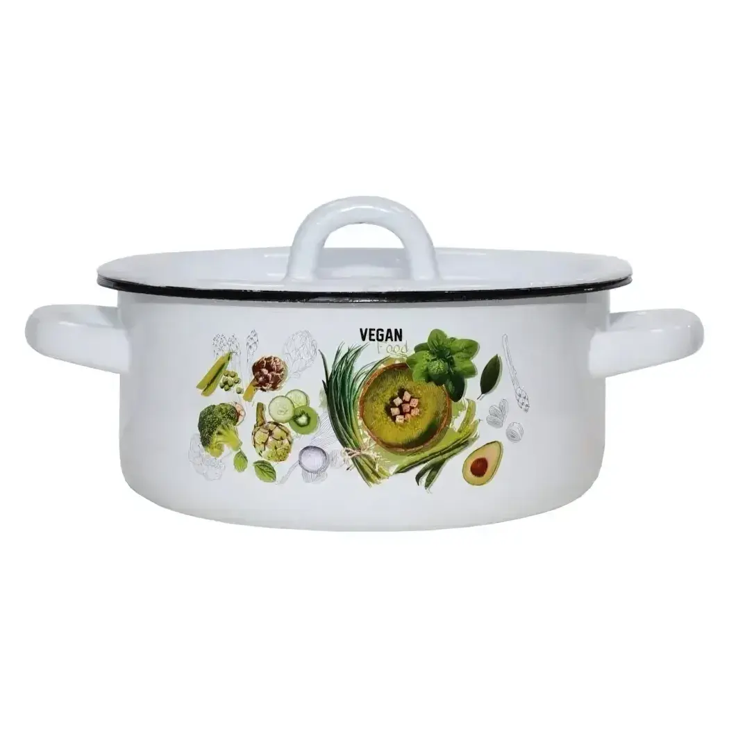 Кастрюля эмалированная 1,5л с дизайном «Vegan Food», серия «Веган», крышка в комплекте
