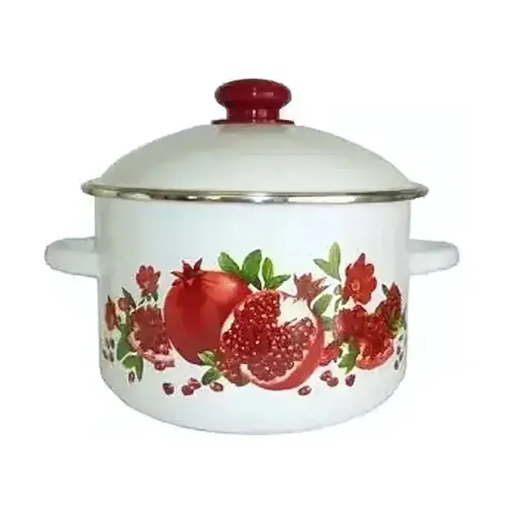 Эмалированная кастрюля объемом 2,0 литра с ярким декоративным изображением гранатов и листьев идеально подходит для приготовления и сервировки разнообразных блюд. Легкая в использовании, подходит для всех типов плит, и обеспечивает равномерное распределение тепла.