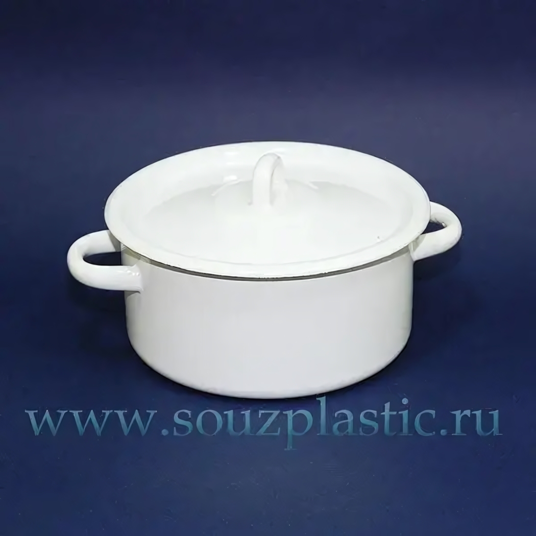 Кастрюля эмалированная 2,0л с крышкой, белая, 2 ручки, модель "С41610", для равномерного нагрева