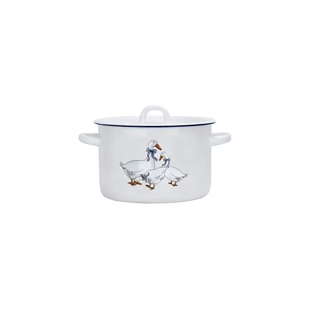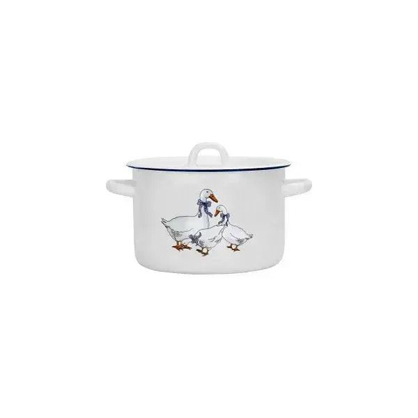 Кастрюля эмалированная 3л с крышкой, дизайн «Гуси», цвет в ассортименте