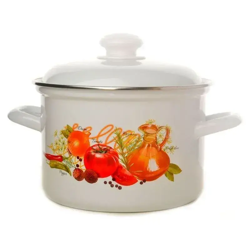 Кастрюля эмалированная 3л с крышкой, серия 'Итальянская кухня', декор овощи/оливки