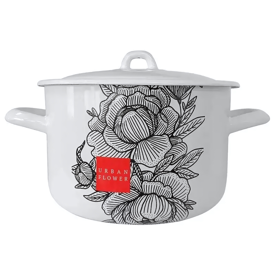Кастрюля эмалированная 4,3л «Urban Flower», белая, цветочный узор, сталь с эмалью
