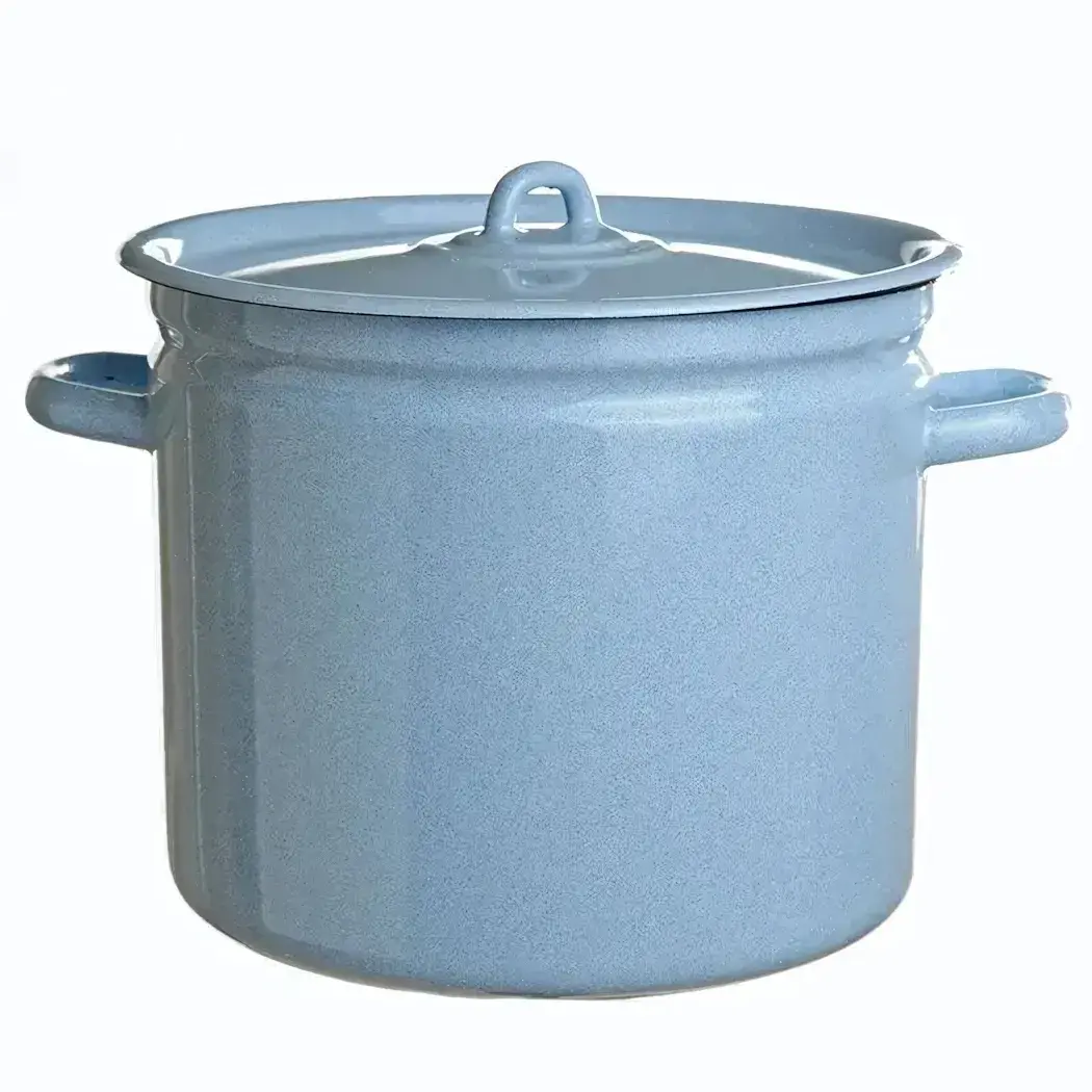 Кастрюля эмалированная 9л с крышкой, две ручки, пароотвод, цвет светло-голубой, сталь