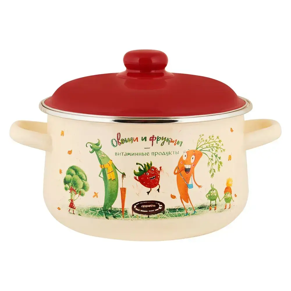 Кастрюля эмалированная «Веселые овощи» 2л, с крышкой, удобные ручки, для готовки и сервировки