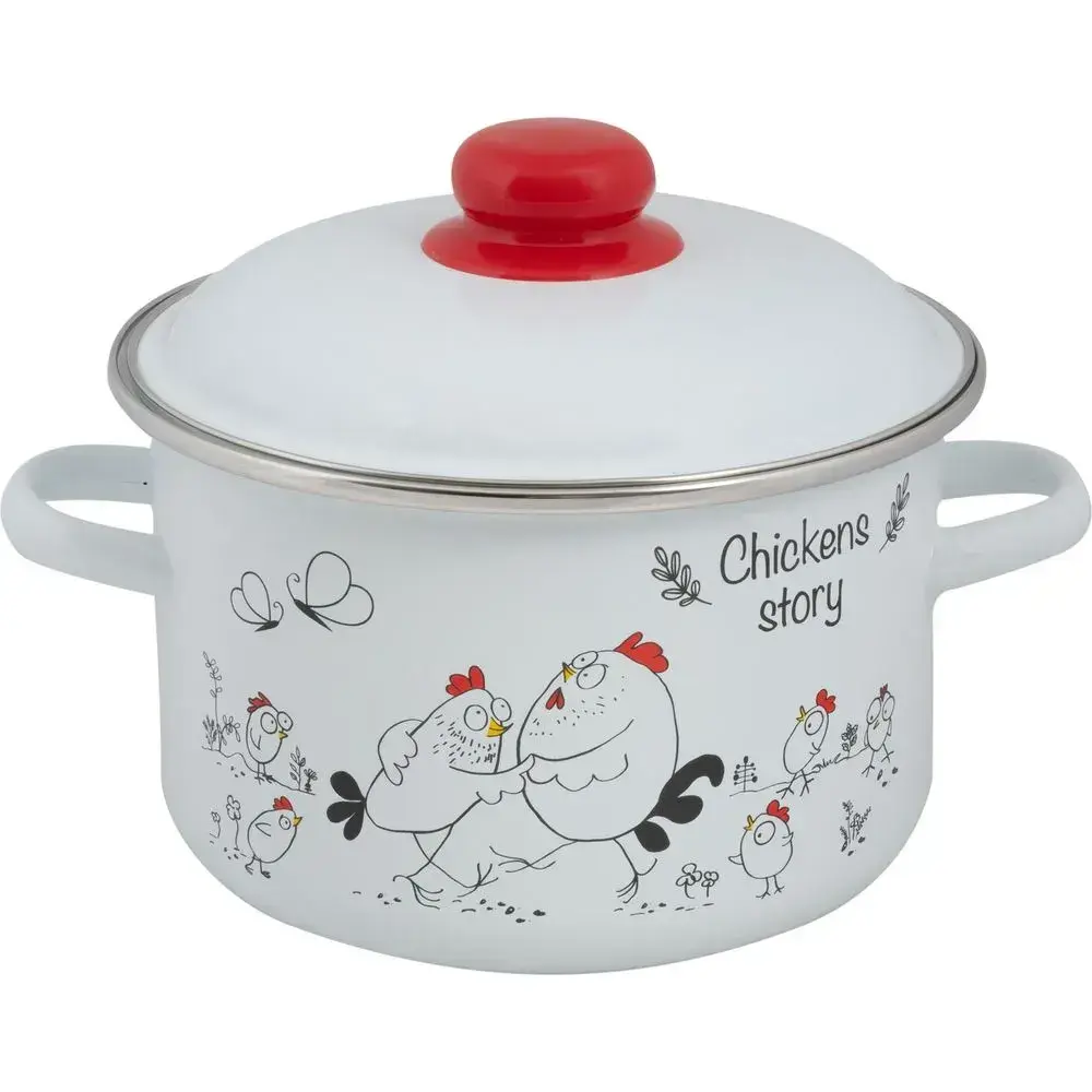 Кастрюля эмалированная «Chickens’stories» 3 л с крышкой, дизайн с курочками, для всех плит