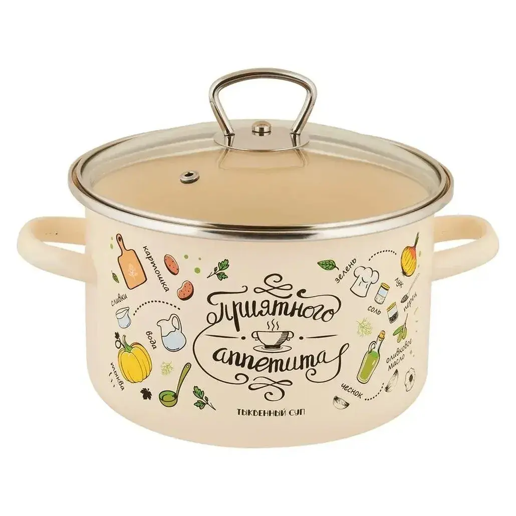 Кастрюля эмалированная 3л с крышкой, дизайн «Приятного аппетита», для комфортного приготовления ТМ Appetite