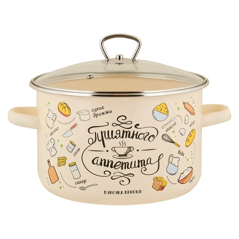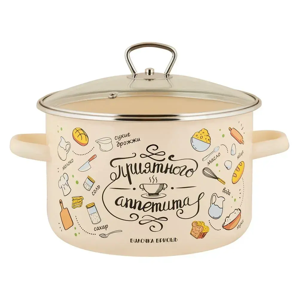 Кастрюля изготовлена из высококачественного металла с двойным эмалевым покрытием внутри и снаружи. Толстые стенки обеспечивают равномерное распределение тепла, а плавные закругленные края упрощают процесс мытья. Стеклянная крышка плотно прилегает к краям, сохраняя аромат и полезные свойства блюд.