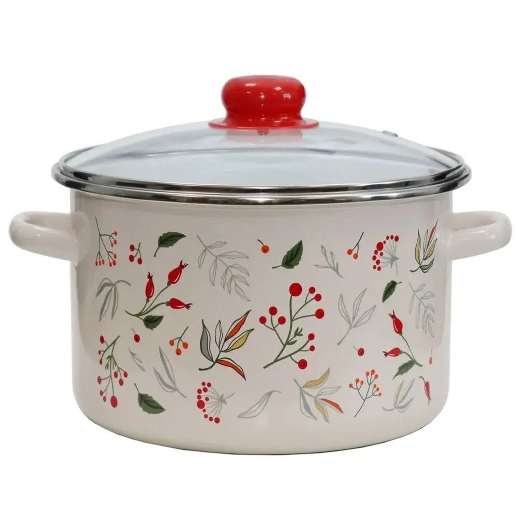 Кастрюля эмалированная 4л, серия 'Ягодки', с крышкой из стекла и металла