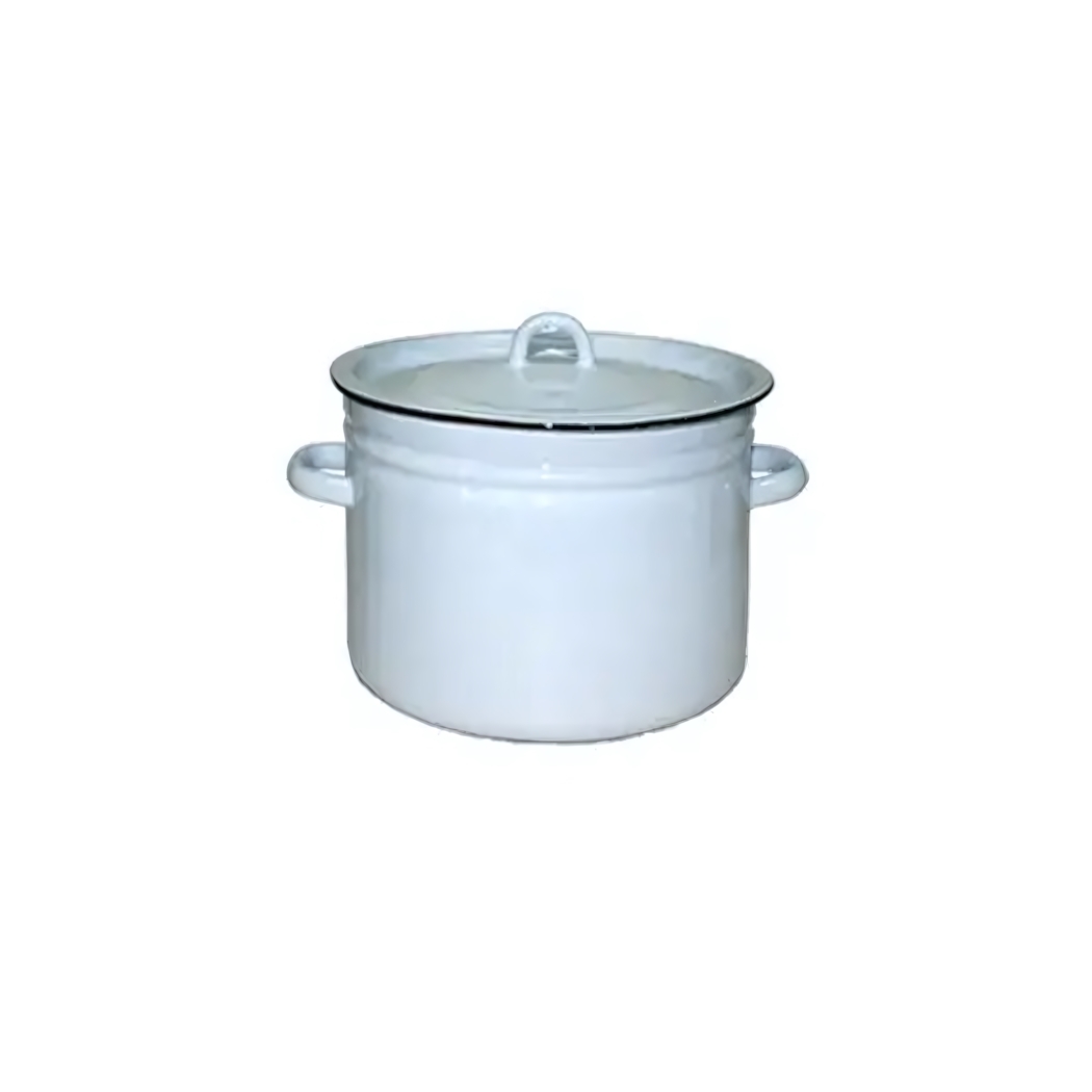 Эмалированная кастрюля объёмом 11,5 литров создана для тех, кто ценит удобство и надежность на кухне. Её усиленная конструкция с двумя ручками обеспечивает безопасность при перемещении даже полной ёмкости, а классическое сочетание белого корпуса с чёрной окантовкой легко впишется в любой интерьер.