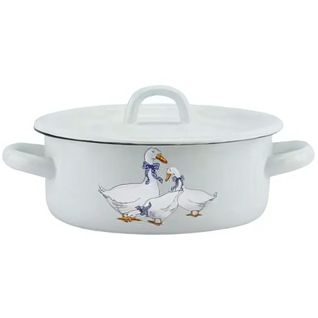 Эмалированная кастрюля с декором «Гуси» — стиль и практичность на вашей кухне