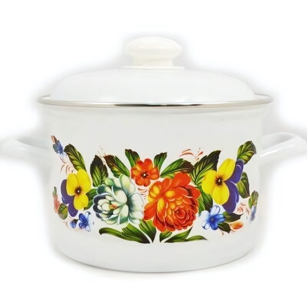 Кастрюля имеет округлую форму и удобные ручки, что обеспечивает комфортное использование. Белый цвет с цветочным узором добавляет изюминку в ваш кухонный интерьер. Размер кастрюли позволяет готовить порции для всей семьи, а её легкость в уходе делает её идеальным выбором для современных хозяек.