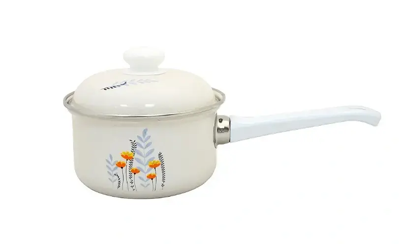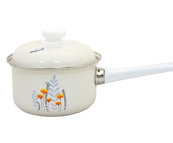 Кастрюля эмалированная «Норвежский лес» 1л, белая с цветочным узором, крышка, ручка