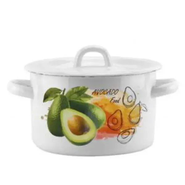 Кастрюля эмалированная 2л, белая с рисунком 'Авокадо', без ободка