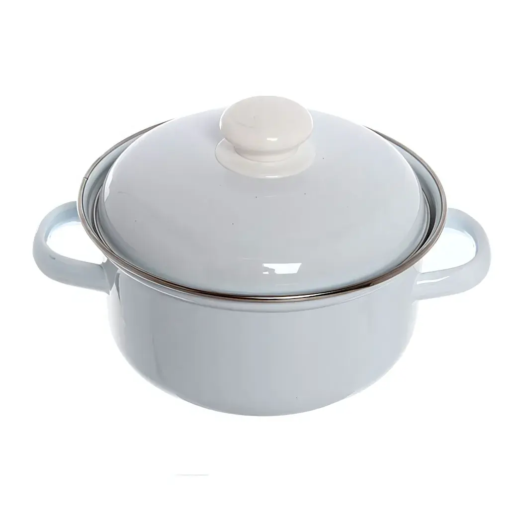 Кастрюля выполнена из высококачественной холоднокатаной стали толщиной 0.8-1мм с надежным эмалевым покрытием. Эргономичные боковые ручки обеспечивают удобный захват, а белая ручка-грибок на крышке не нагревается во время готовки. Металлический ободок крышки гарантирует плотное прилегание и сохранение тепла.