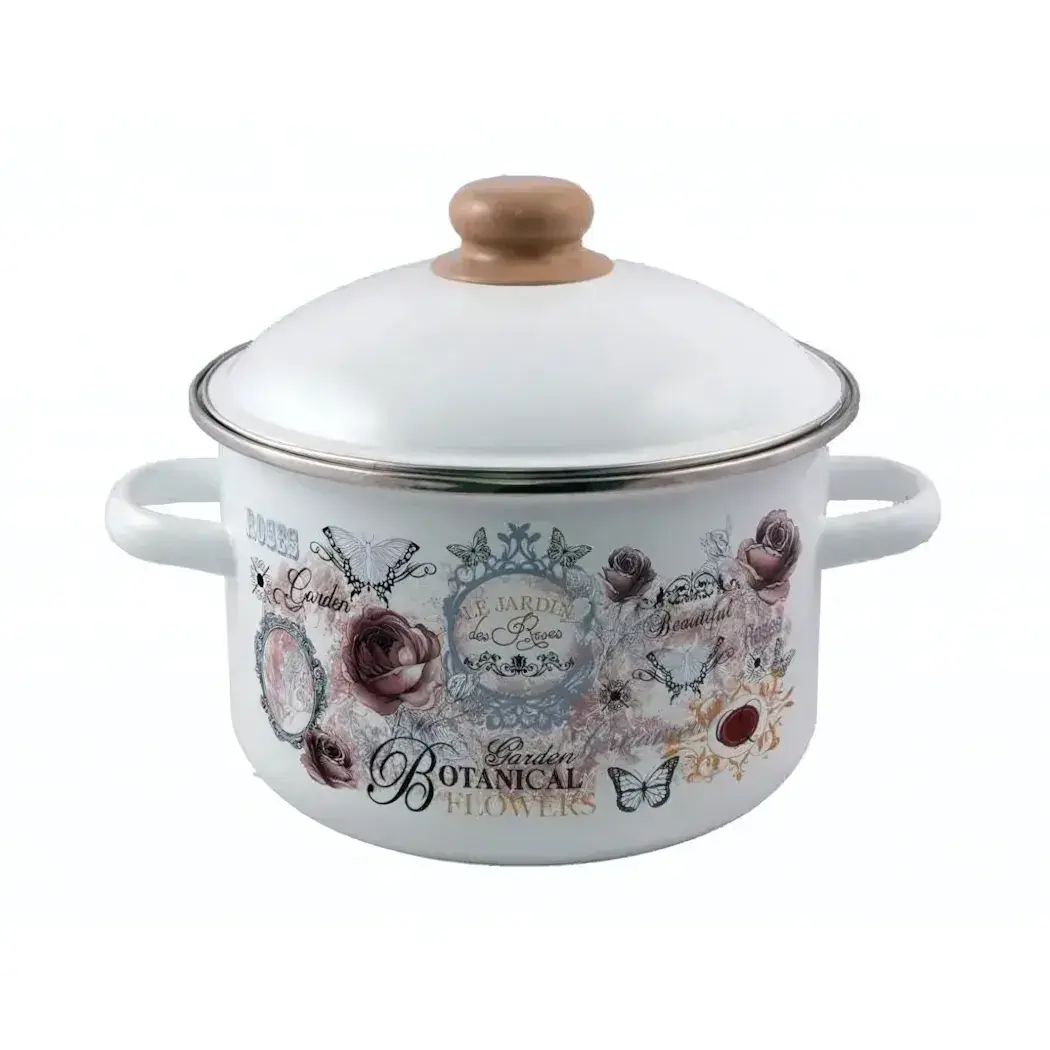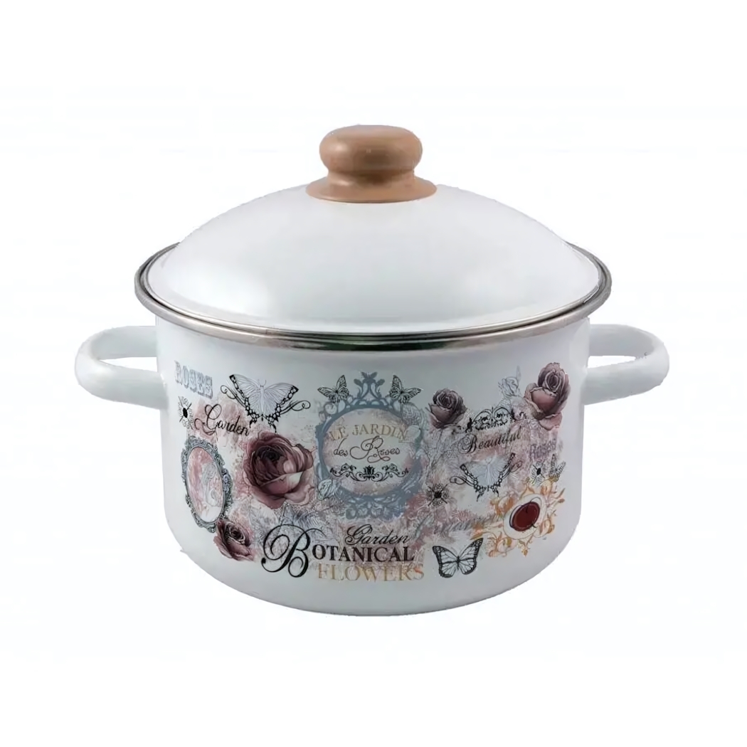 Кастрюля эмалированная "Roses" 4л, высокая прочность, стильный дизайн