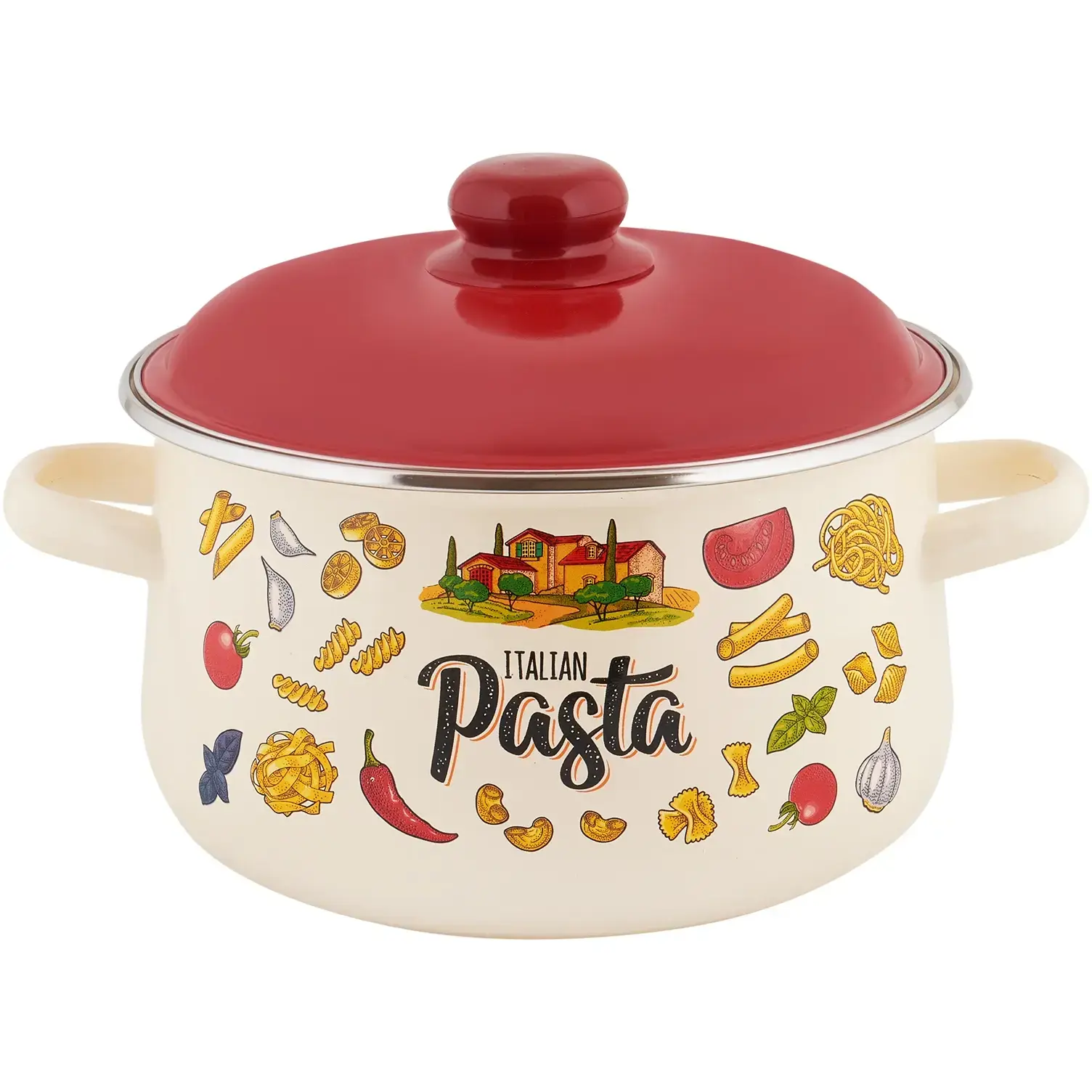 Кастрюля эмалированная 4л 'Pasta ITALIAN', кремовая/красная, для пасты и рагу