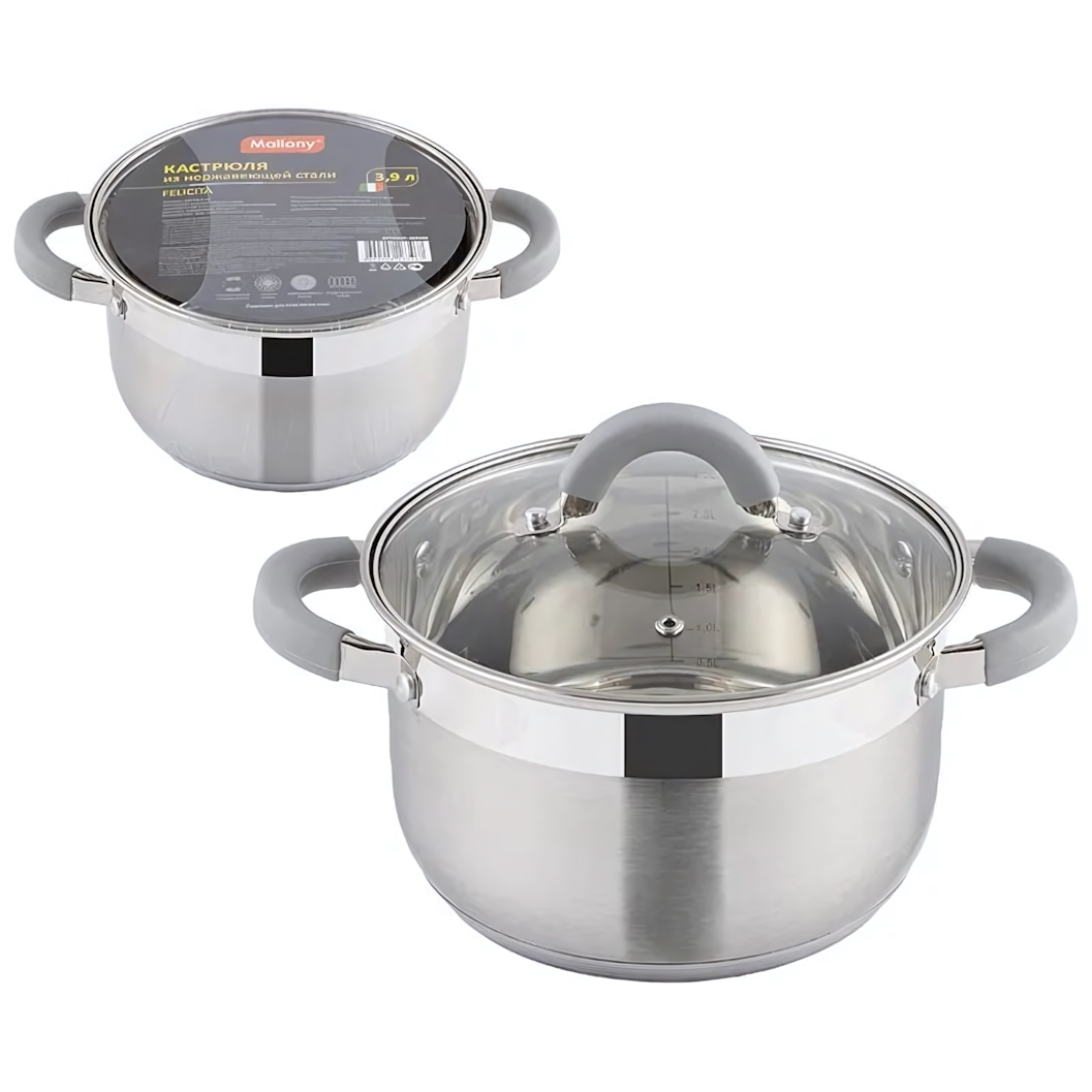 - Простота в уходе: Кастрюлю легко мыть вручную или в посудомоечной машине. Гладкая поверхность нержавеющей стали устойчива к царапинам и не требует специальных средств для чистки.