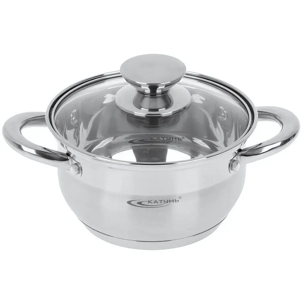 Объем кастрюли составляет 1,8 литра, что делает ее идеальной для приготовления блюд на небольшую семью. Серебристый цвет и зеркальная поверхность делают кастрюлю не только функциональной, но и стильной. Логотип производителя «Катунь» на корпусе подчеркивает высокое качество изделия.