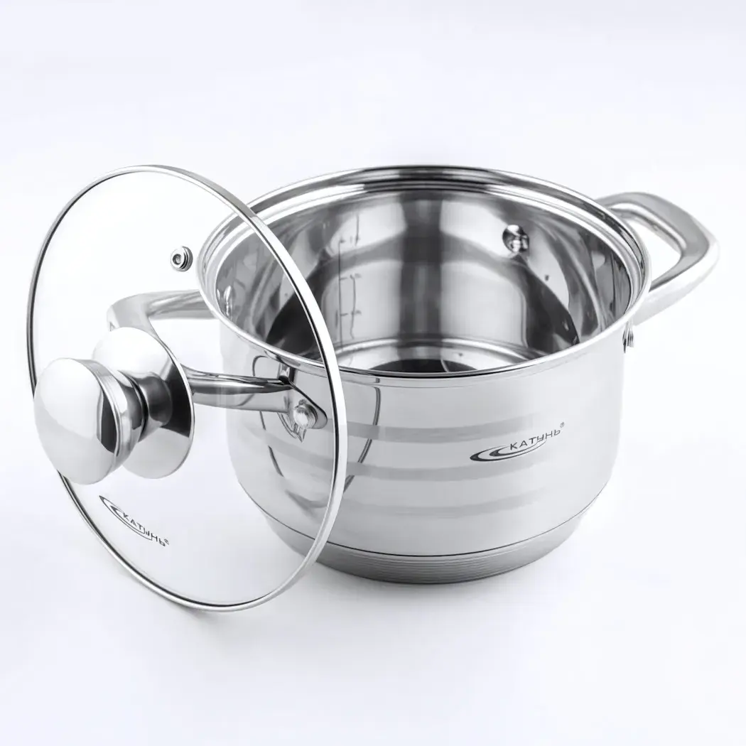 Кастрюля «Элис» 2,5л из нержавеющей стали, серебристая, с крышкой и мерной шкалой