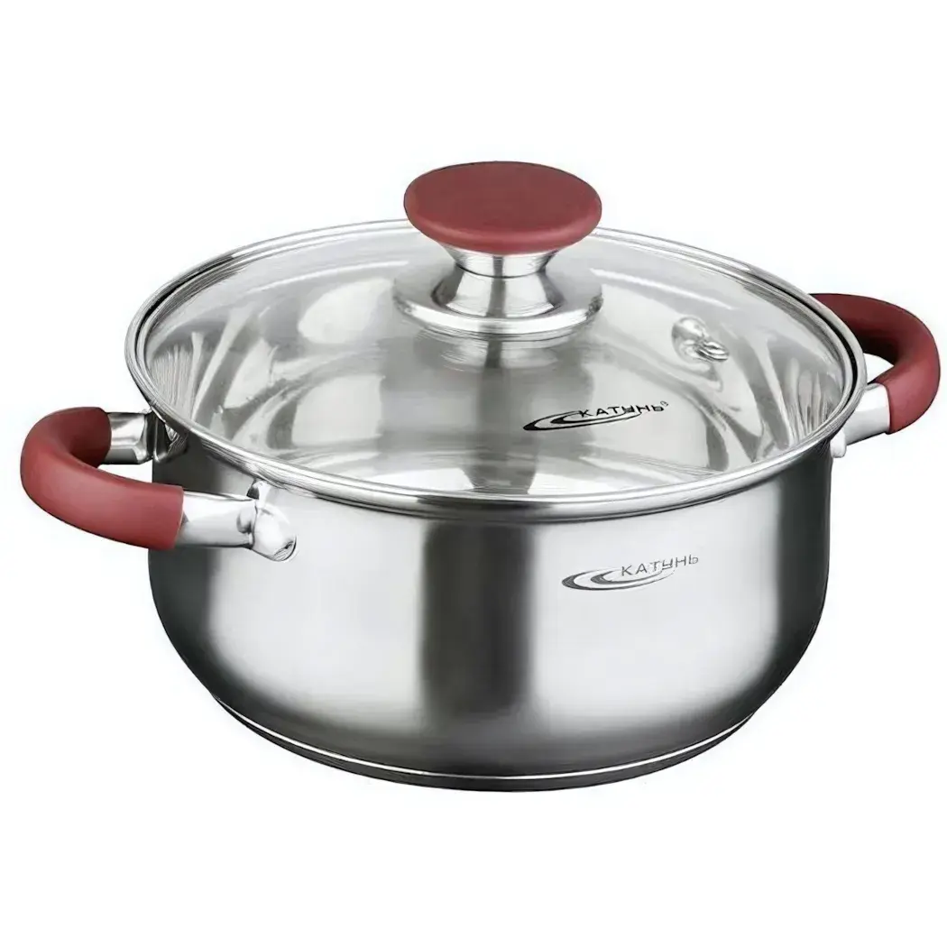 Кастрюля из нержавеющей стали 'Берта' 4л, с крышкой, красные ручки