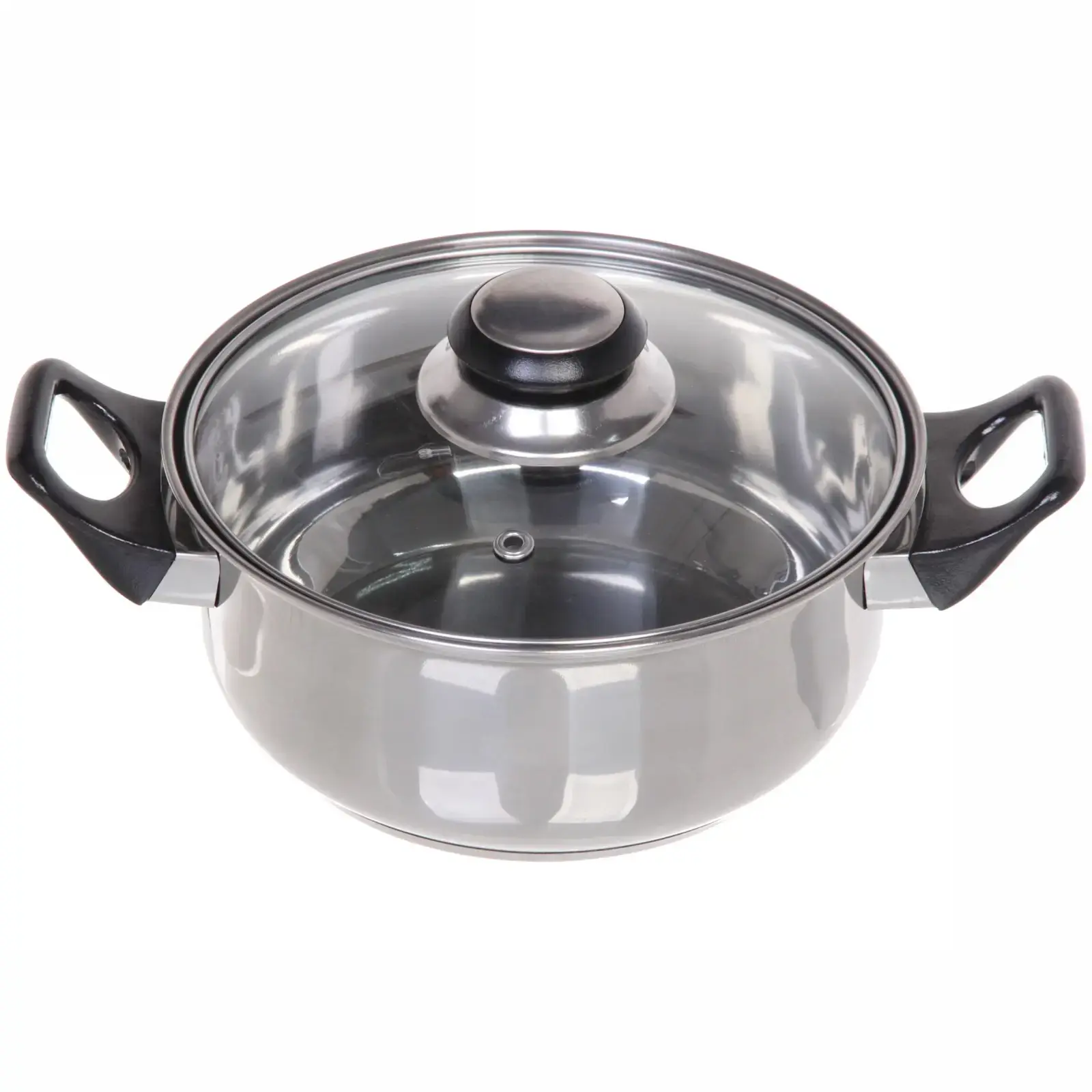 Кастрюля из нержавеющей стали с прозрачной крышкой сочетает в себе эргономичный дизайн и профессиональные характеристики. Благодаря многослойному дну обеспечивает равномерный нагрев и сохраняет тепло до 2 часов, позволяя готовить без постоянного контроля.