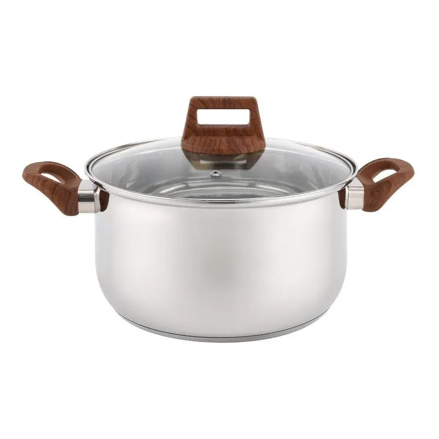 Кастрюля металлическая Donna 2,8л с крышкой, имитация дерева, серебристая, удобные ручки, стеклянная крышка