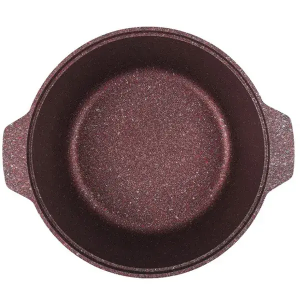 Ультрапрочное антипригарное покрытие «Granit ultra» позволяет использовать даже металлические предметы, не боясь повредить поверхность. Это покрытие, усиленное минералами, близкими по твердости к алмазу, гарантирует долговечность и легкость в уходе. Кастрюля не только практична, но и стильна, благодаря своему бордовому цвету и текстуре, напоминающей гранит.