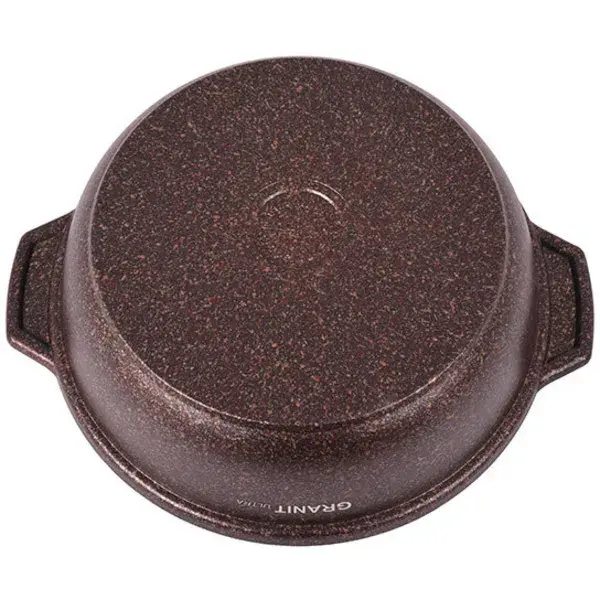 Бордовый оттенок с гранитной текстурой гармонично впишется в современную кухню, а компактные размеры (высота 12 см, диаметр 24 см) обеспечат удобное хранение.