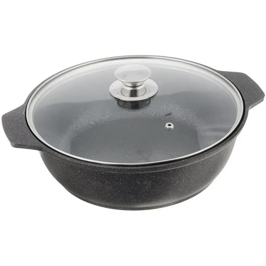 Кастрюля-жаровня Kukmara 3л с крышкой, антипригарное литое покрытие, цвет «Тёмный мрамор»