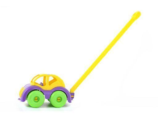 Ребёнок может толкать машинку перед собой, держась за ручку, или возить за собой на верёвочке. Игрушка помогает отрабатывать повороты, остановки и изменение скорости движения, развивая вестибулярный аппарат.