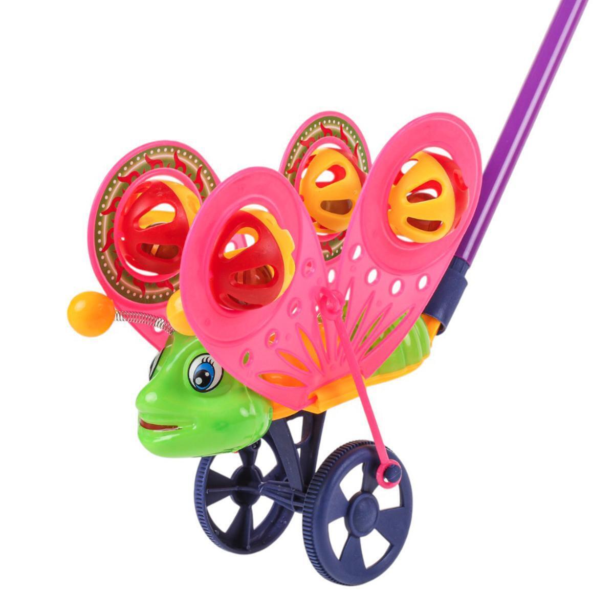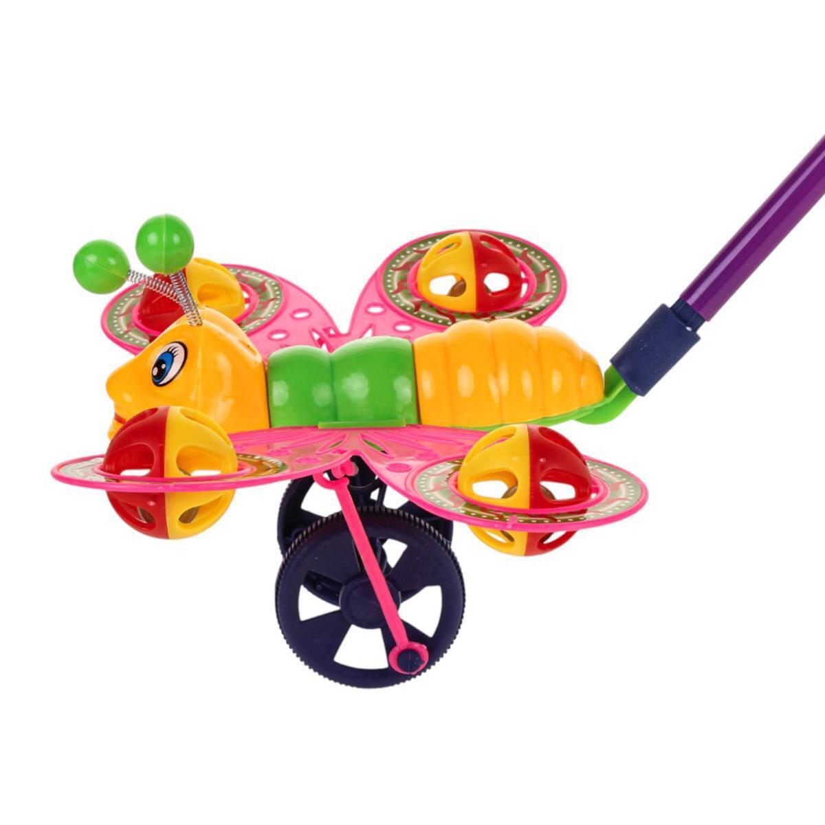 Каталка на палке "Бабочка" 51 см, зелёный, пластик, для развития равновесия детей