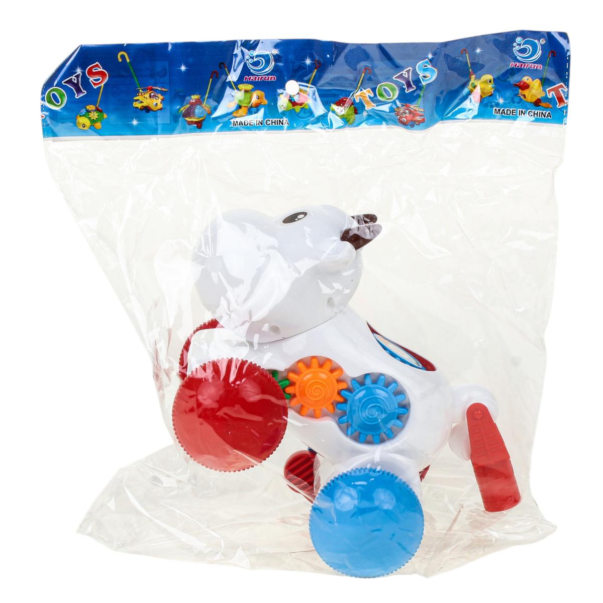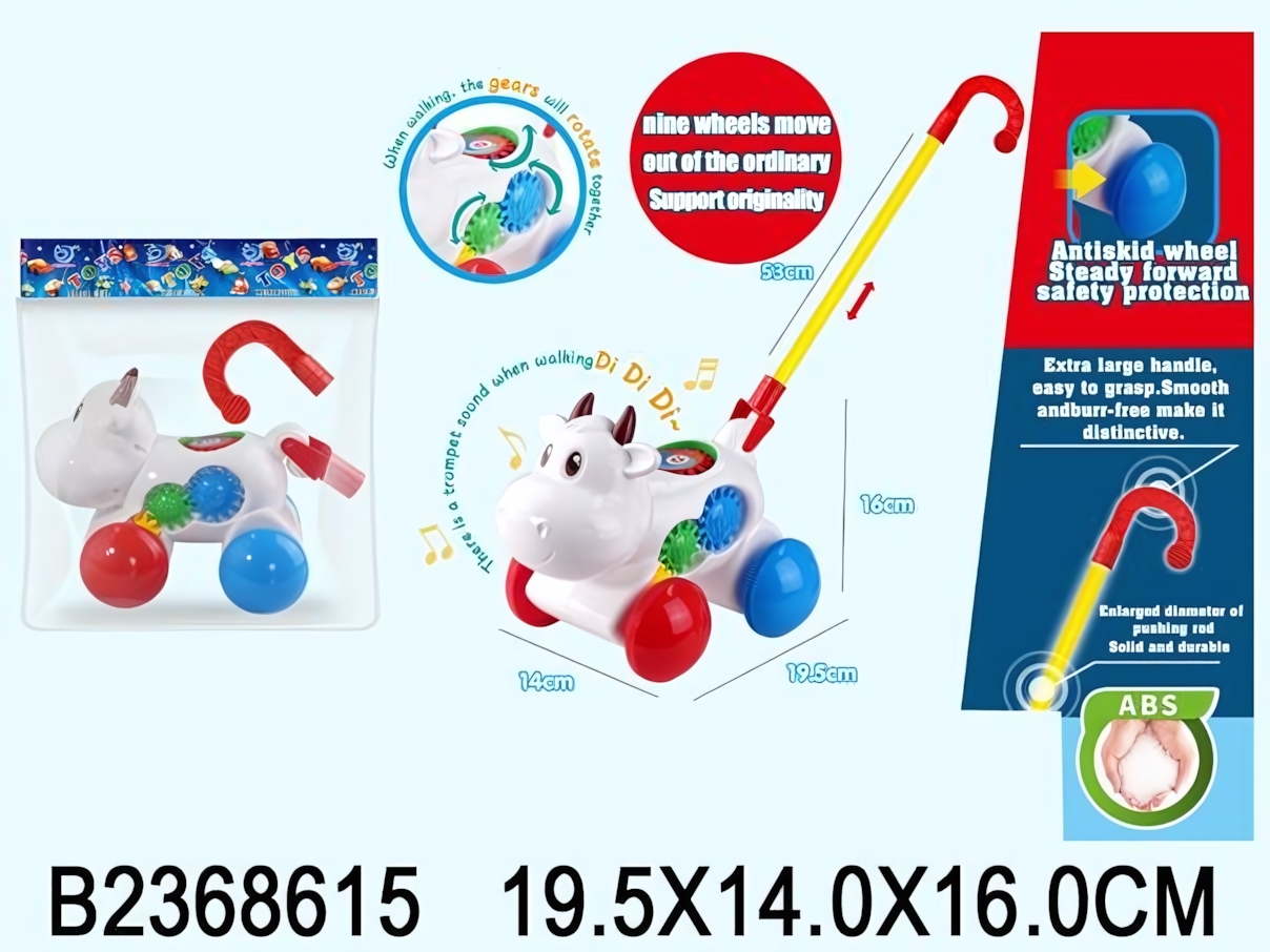 Яркая каталка на палке в форме коровы превращает каждую прогулку по дому или на улице в увлекательное приключение. Во время движения игрушка издаёт забавный писк, а шестерёнки на корпусе начинают вращаться, привлекая внимание ребёнка и вызывая искренний интерес. Это отличный способ мотивировать малыша больше двигаться и развивать координацию.