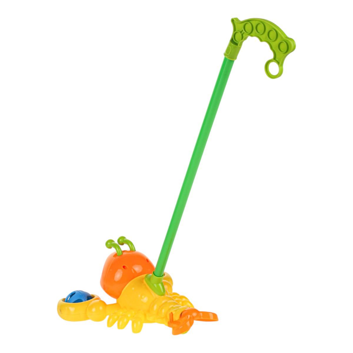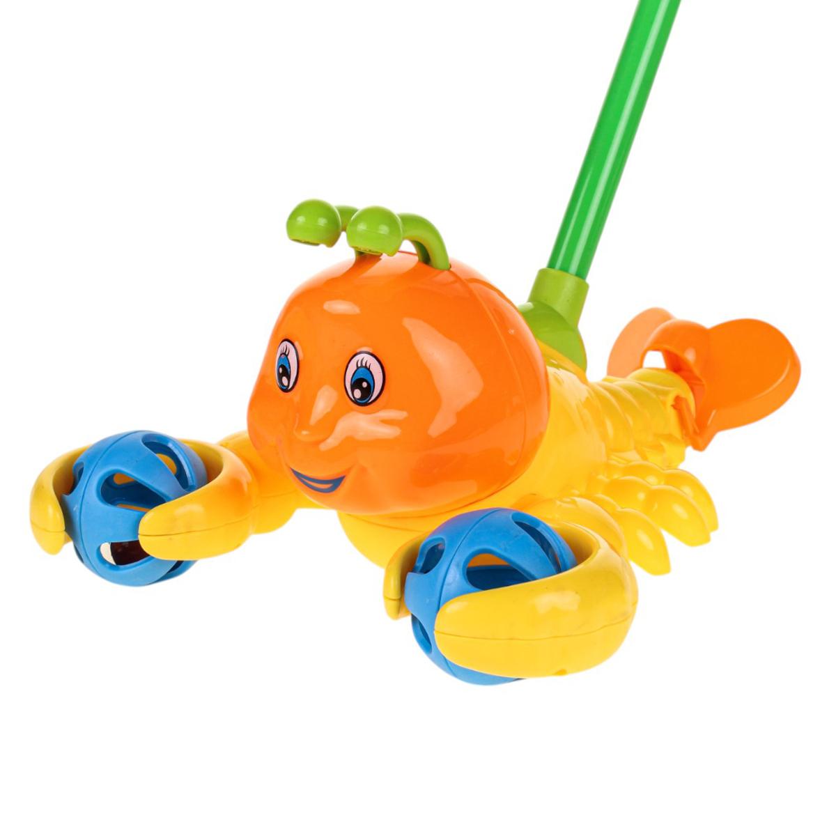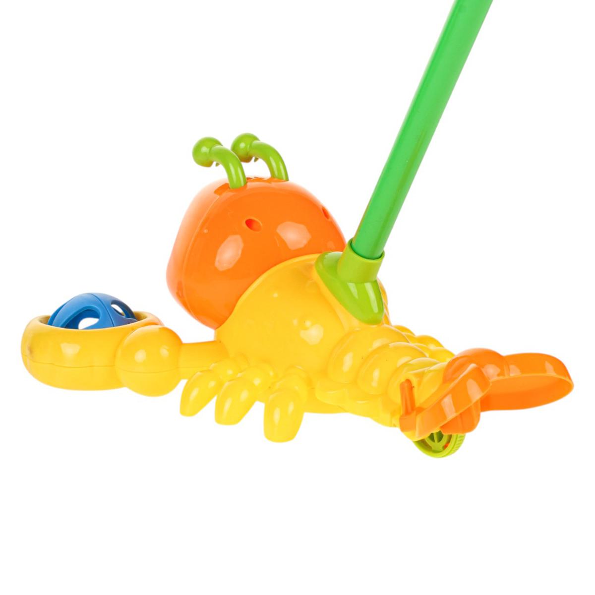 Каталка на палке краб 52см, желтый, пластик, 38см ручка, развивает баланс