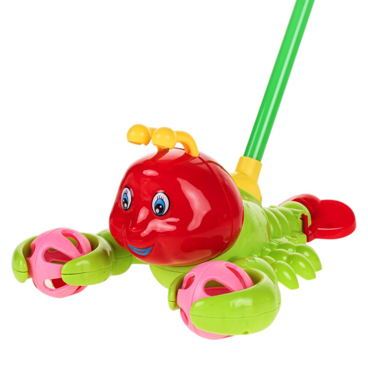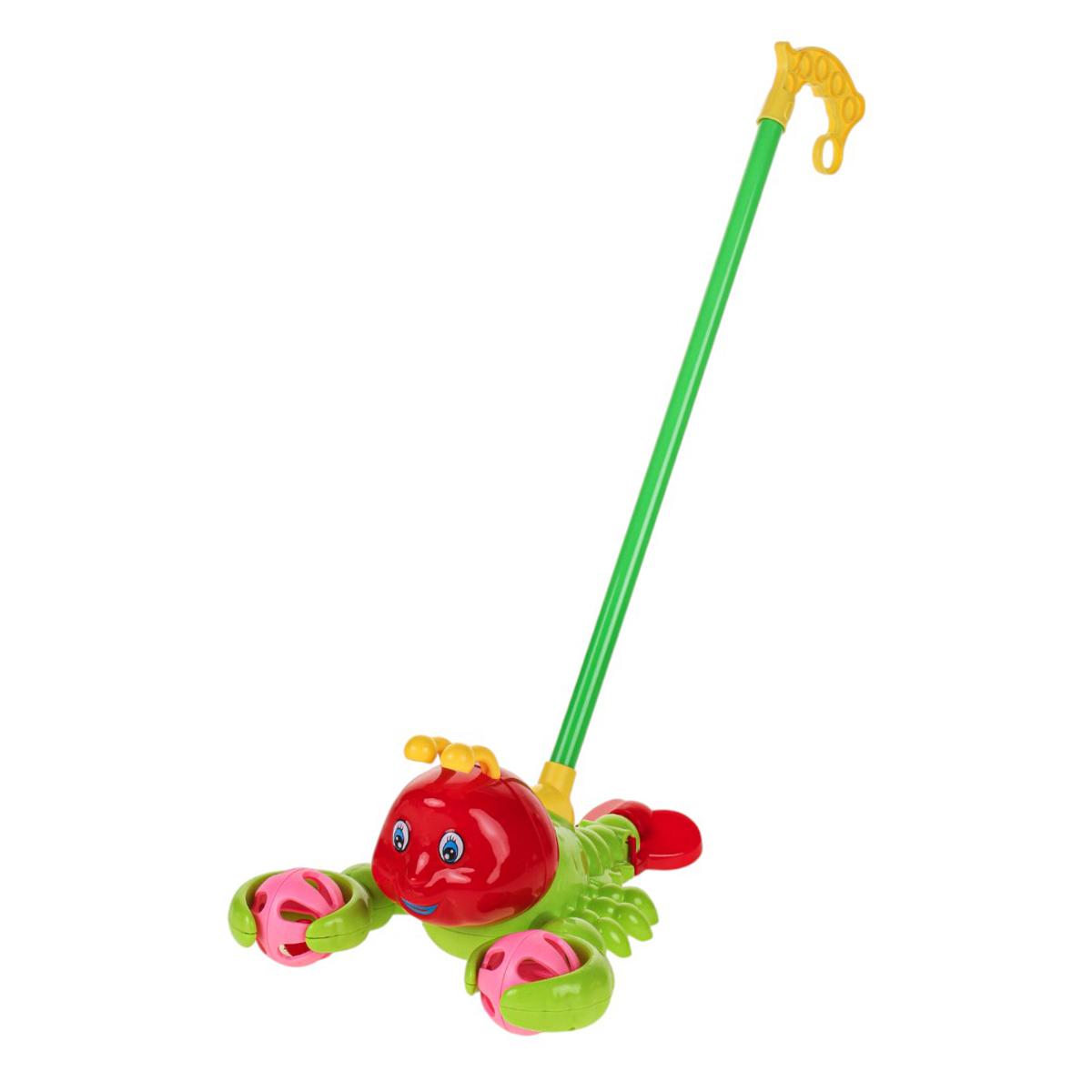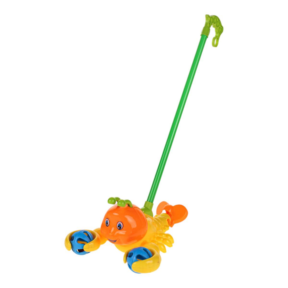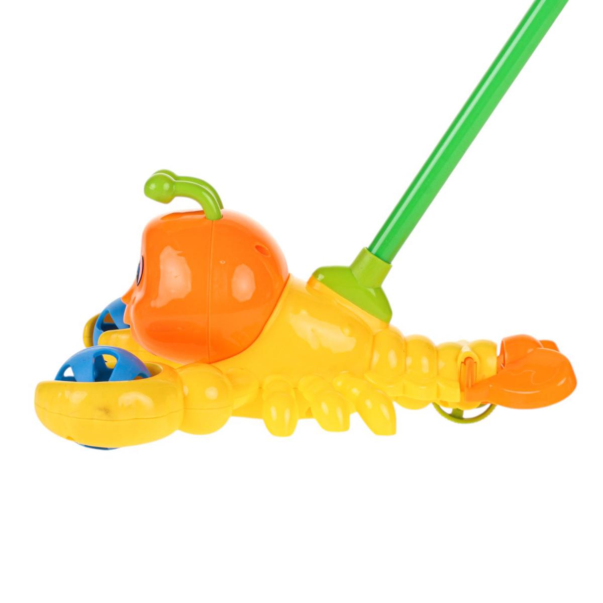 Каталка на палке краб 52см, желтый, пластик, 38см ручка, развивает баланс