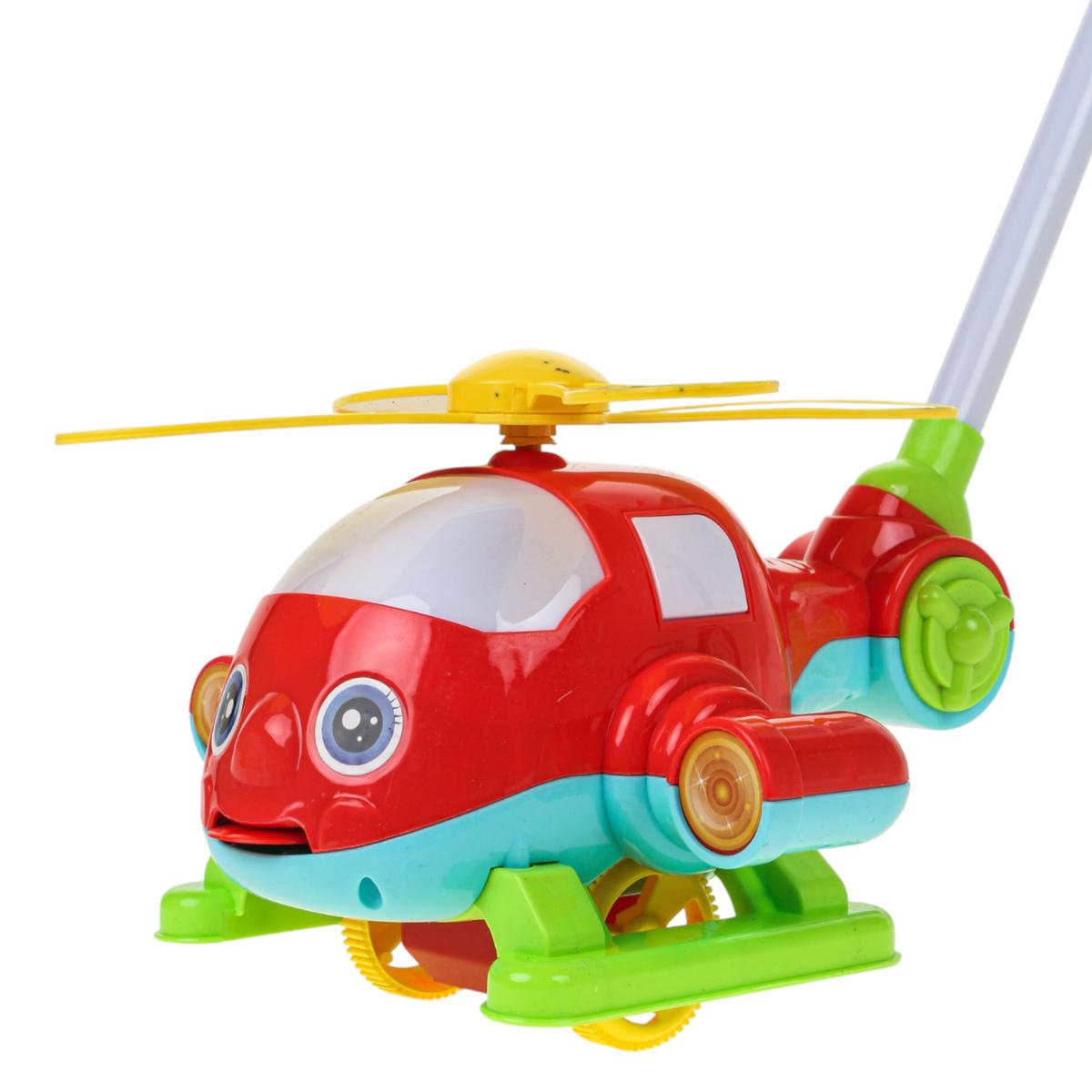 Каталка на палке в виде вертолета со светом и звуком