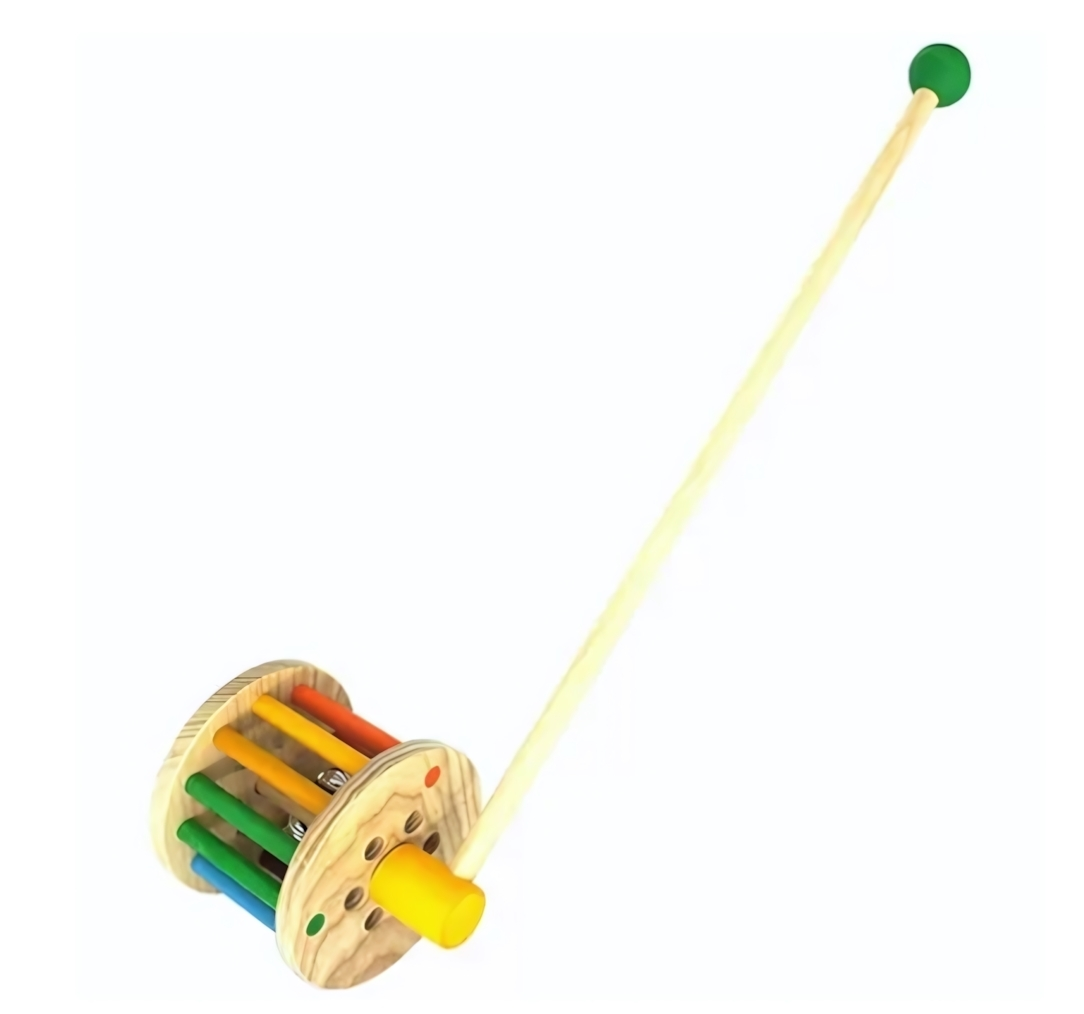 Каталка предназначена для детей от года, которые только начинают делать свои первые шаги. Она поможет вашему малышу освоить термины 'назад' и 'вперед', а также 'направо' и 'налево'. Благодаря ярким шарикам и бубенчикам, которые звонко пересыпаются внутри деревянного барабана, игра с каталкой станет не только полезной, но и веселой.